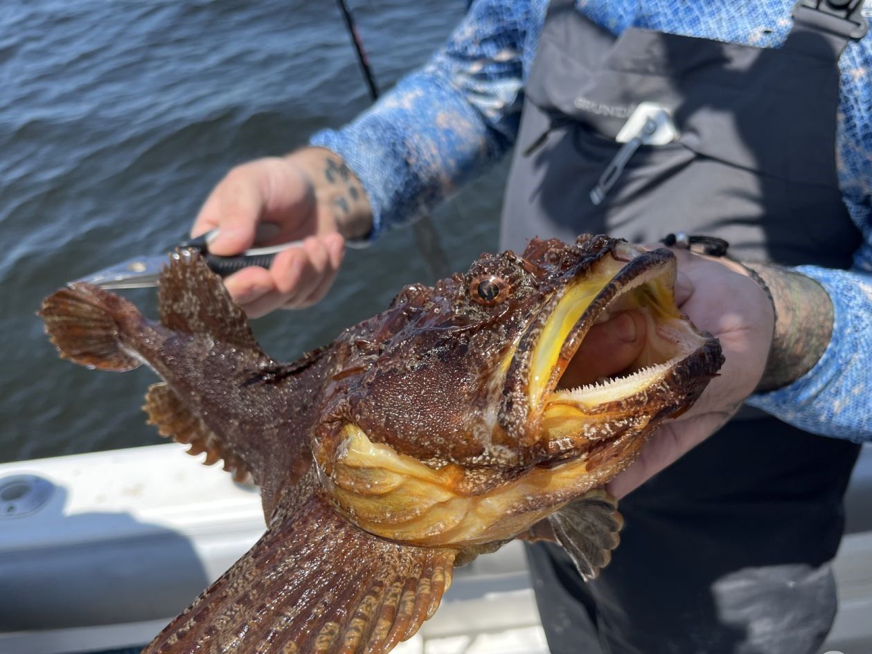 American Angler (Monkfish): Don't let their ugly mugs fool you – these bottom-dwelling ambush predators are some of the tastiest fish in the sea. Monkfish have huge mouths filled with sharp teeth, and they'll eat just about anything that fits in there. They're not as common as other groundfish, but when we do hook one, it's always a highlight of the trip. Their firm, almost lobster-like meat is highly prized by chefs.